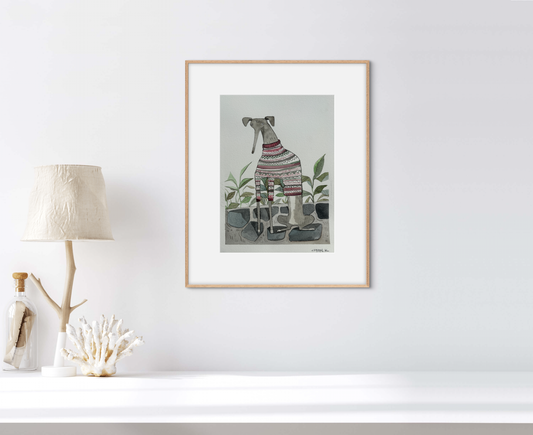 Crystal Kung, Long Dog in Sweater, Watercolor, 12 X 9"Regular price $600.00 USDRegular priceUnit price / per-