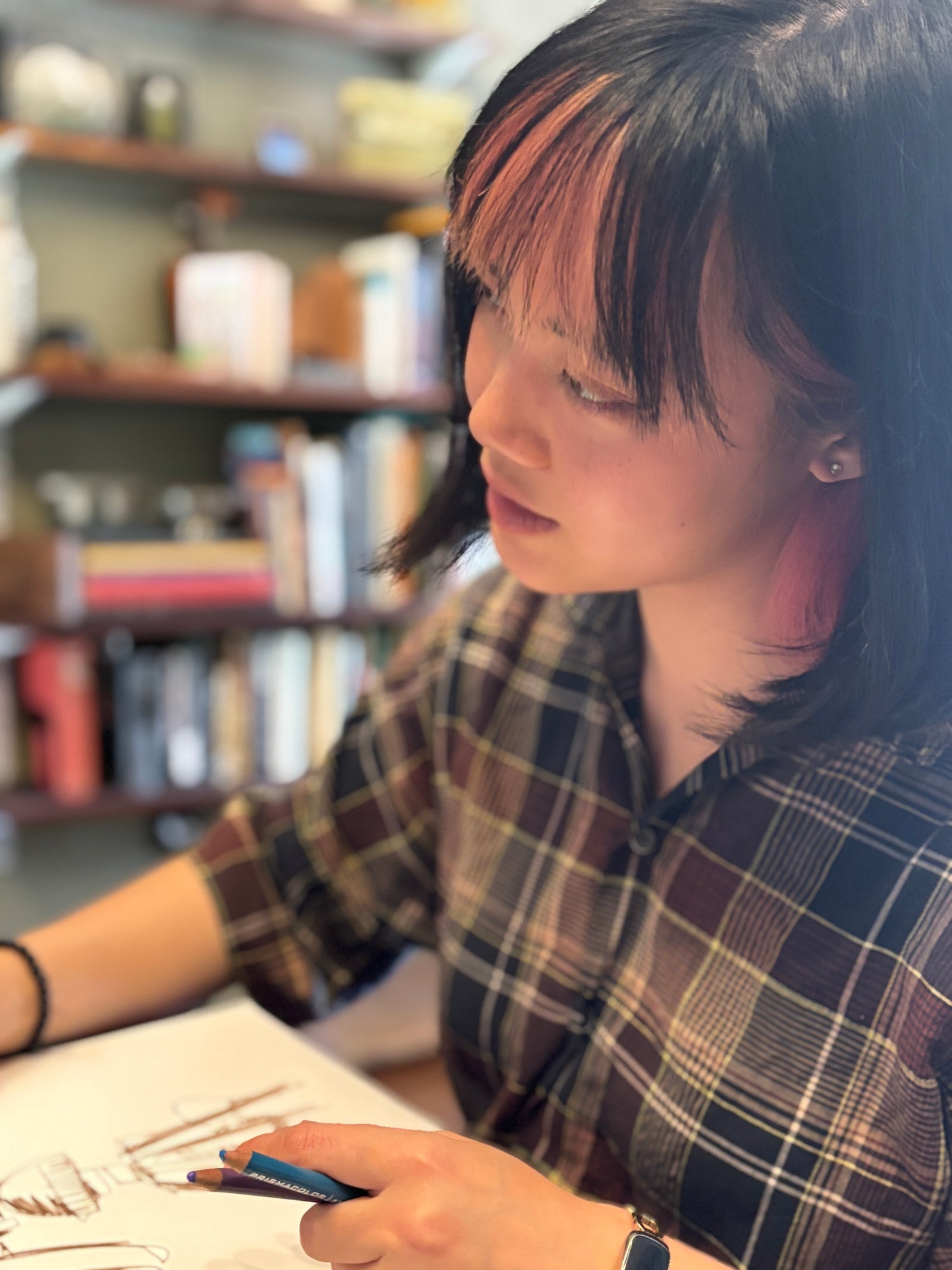 "There's always characters in my drawings, for sure...I remember as a kid I did a drawing of a bus, and I put everyone I know in that bus, like my mom, my dad, my brother...So there's always a character in there, and then creatures, things like that. And I would draw comics about people in my class, during the class."