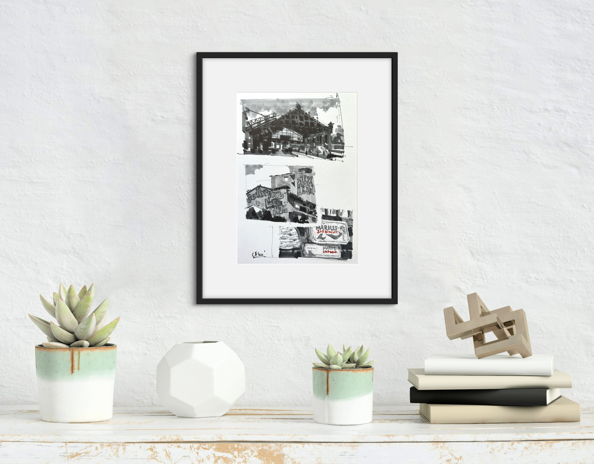 A beautiful multi-panel sketch of a day out and about in Marseille. A train station, a graffitied facade, and a close up sketch of sardine tins tell the story of a meander through a city's colorful streets.