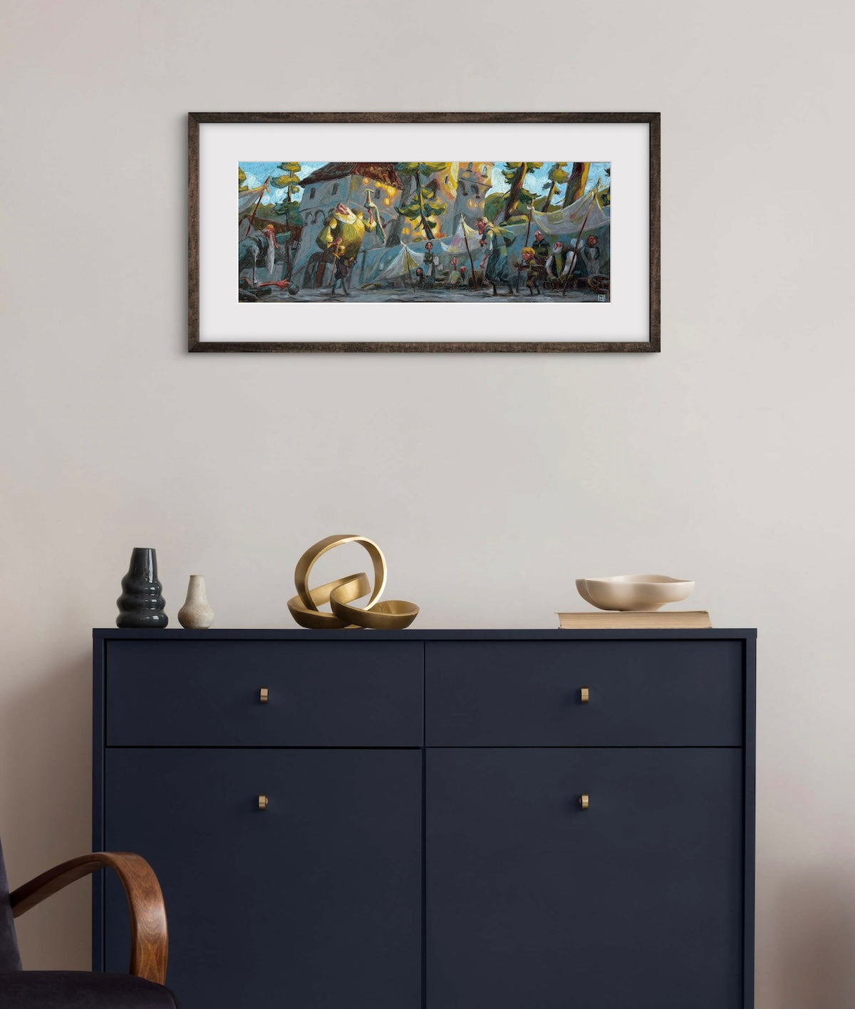 The ultimate goal of the challenge was to sharpen visual storytelling skills. There were no limits - artists had free rein to convey the concept through composition, color choices, character design and blocking, world building, and lighting decisions. Noah would invariably spend several weeks on a single drawing, developing his ideas with exploratory thumbnails before setting to work on his fully realized scenario.