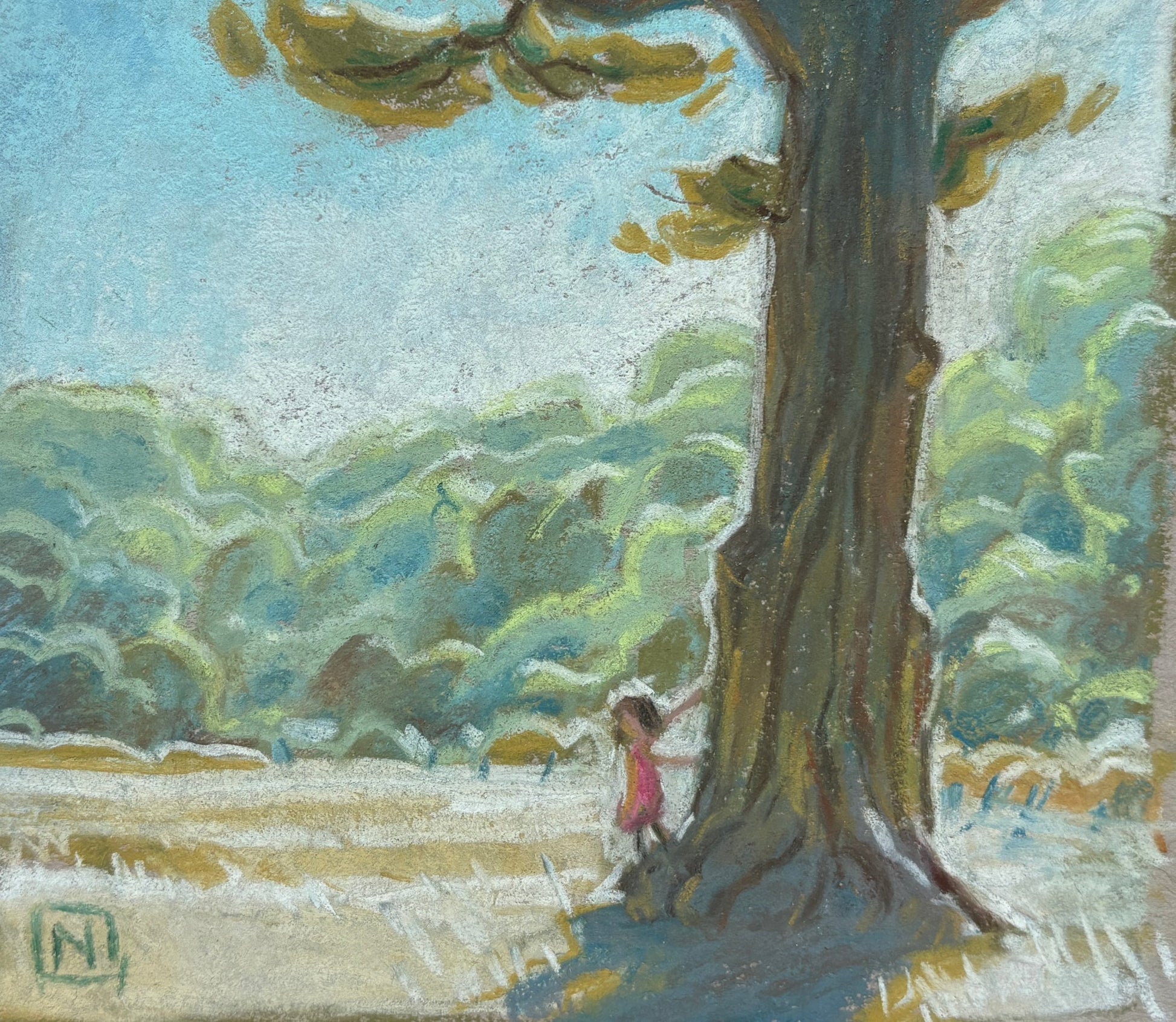 This series of plein air pastels were done over the course of many years (from roughly 2014 through to 2020) and feature Noah's growing children in the surrounding Northern California wilderness. Nupastels on sketchbook paper.