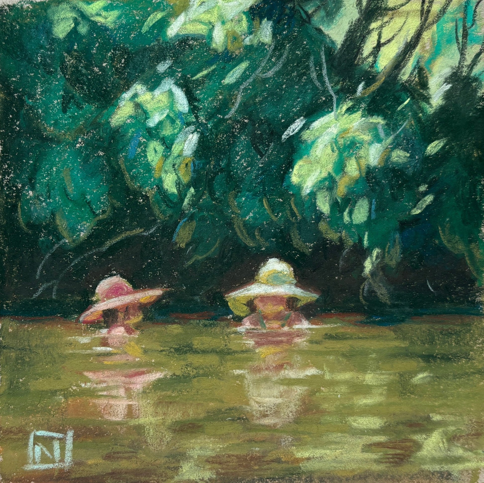 Noah Klocek, Lazy River, Pastel on Sketchbook Paper, 4 1/2 X 4 1/2"