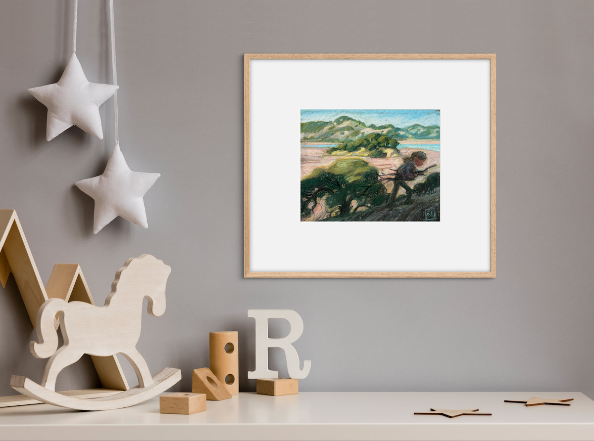 This series of plein air pastels were done over the course of many years (from roughly 2014 through to 2020) and feature Noah's growing children in the surrounding Northern California wilderness. Nupastels on sketchbook paper.