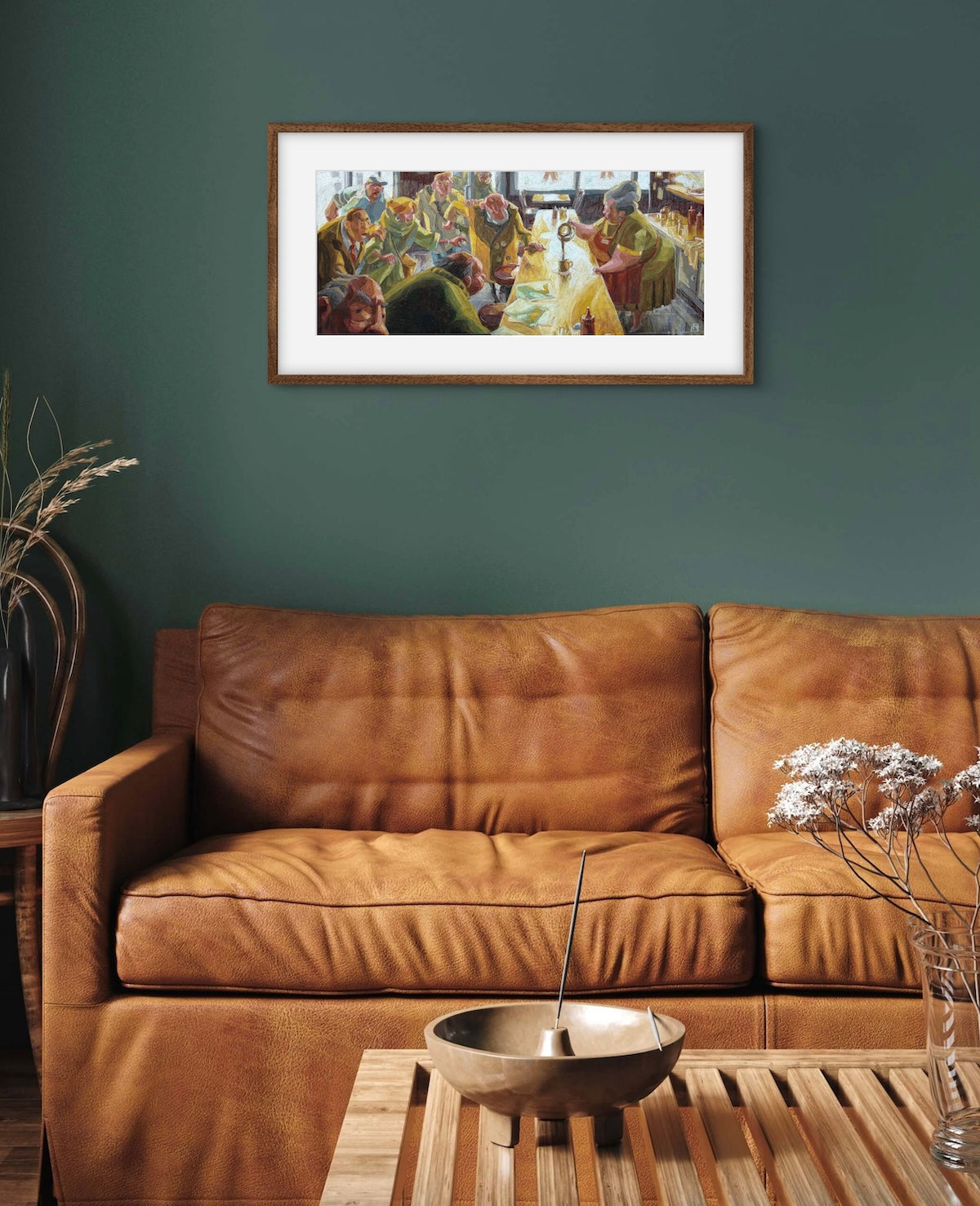 The ultimate goal of the challenge was to sharpen visual storytelling skills. There were no limits - artists had free rein to convey the concept through composition, color choices, character design and blocking, world building, and lighting decisions. Noah would invariably spend several weeks on a single drawing, developing his ideas with exploratory thumbnails before setting to work on his fully realized scenario.