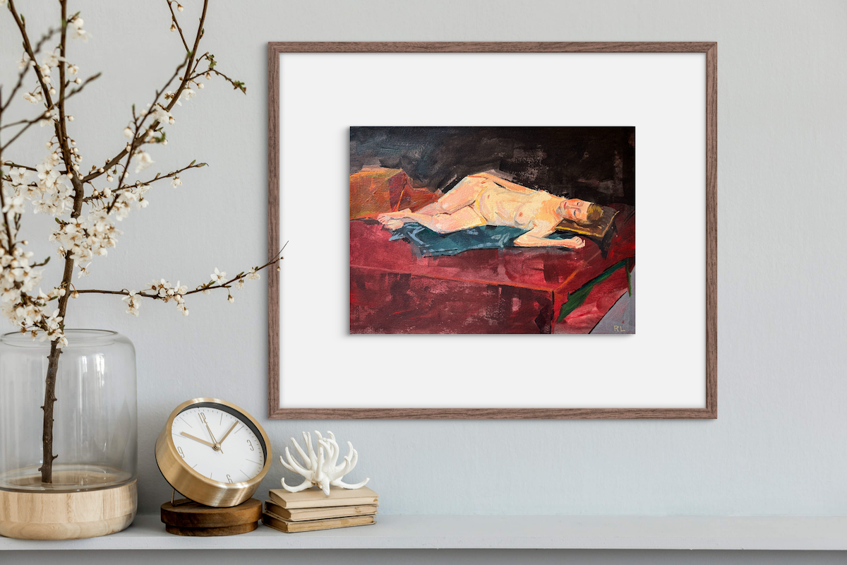 Rona Liu, Reclining Nude 1, Acrylic on Watercolor Paper, 8 1/2 X 12"