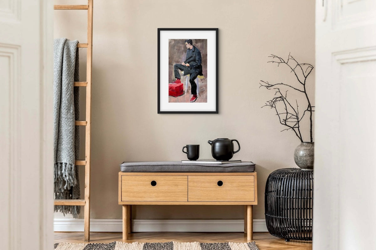 Rona Liu, Seated Figure, Acrylic on Rives Paper, 18 X 11 1/2"