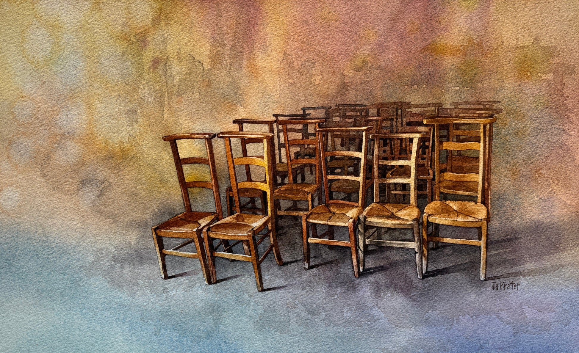 Tia Kratter, Sitting Pretty, Watercolor on Watercolor Paper, 11 1/2 X 18